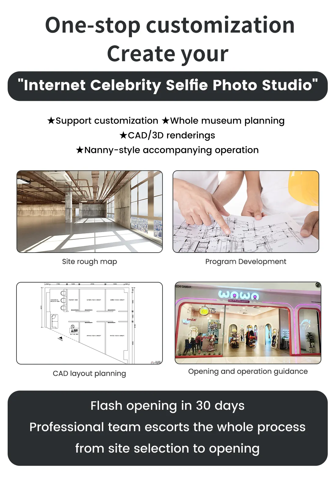 INTRODUCTION Direct sales from the source factory. OEM/ODM software and hardware customization. Modular installation, convenient movementCan design indoor and outdoor photo studio projects. Support multi-national